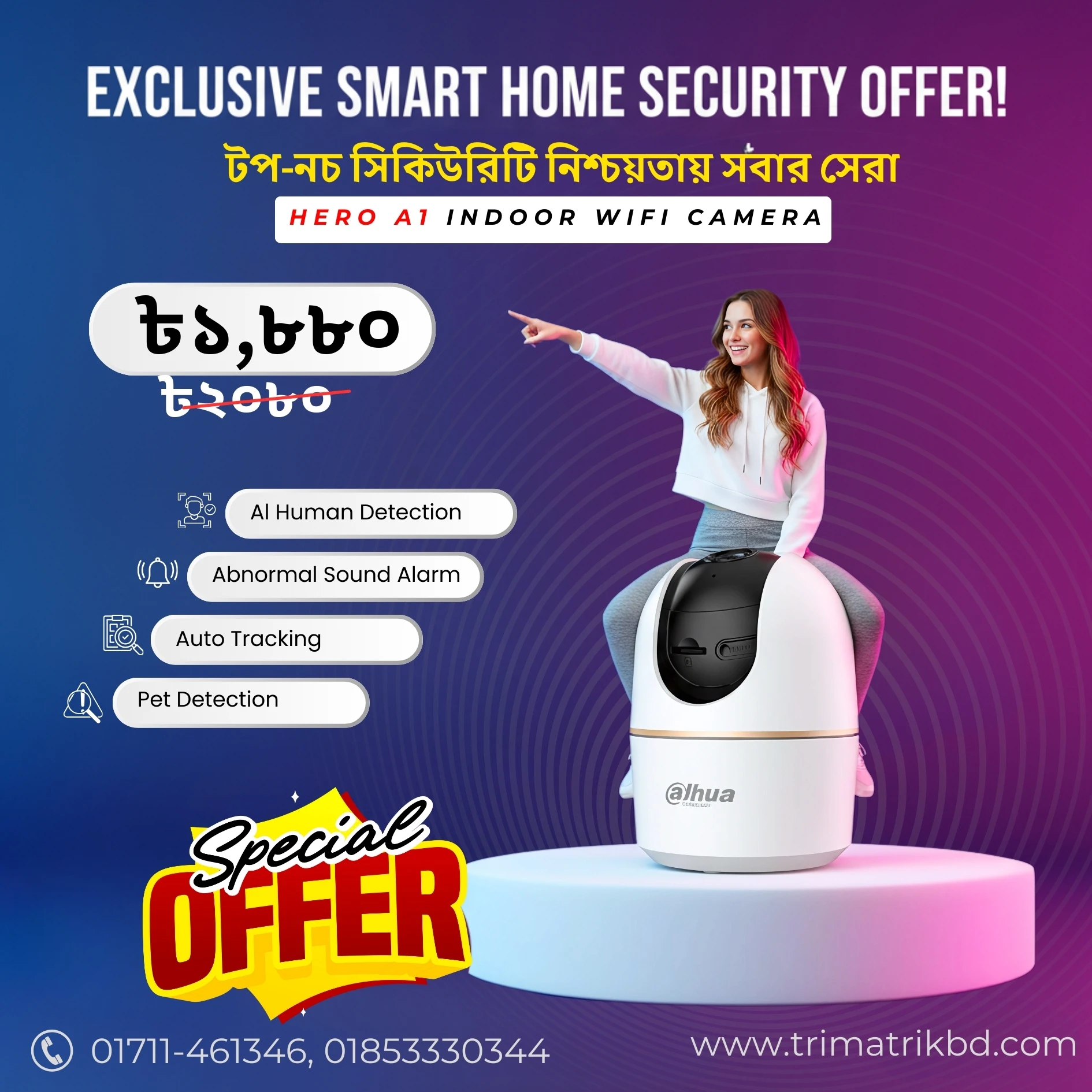 স্পেশাল অফার: Dahua DH-H3AE 3MP HERO A1 Wi-Fi Pan & Tilt নেটওয়ার্ক ক্যামেরা